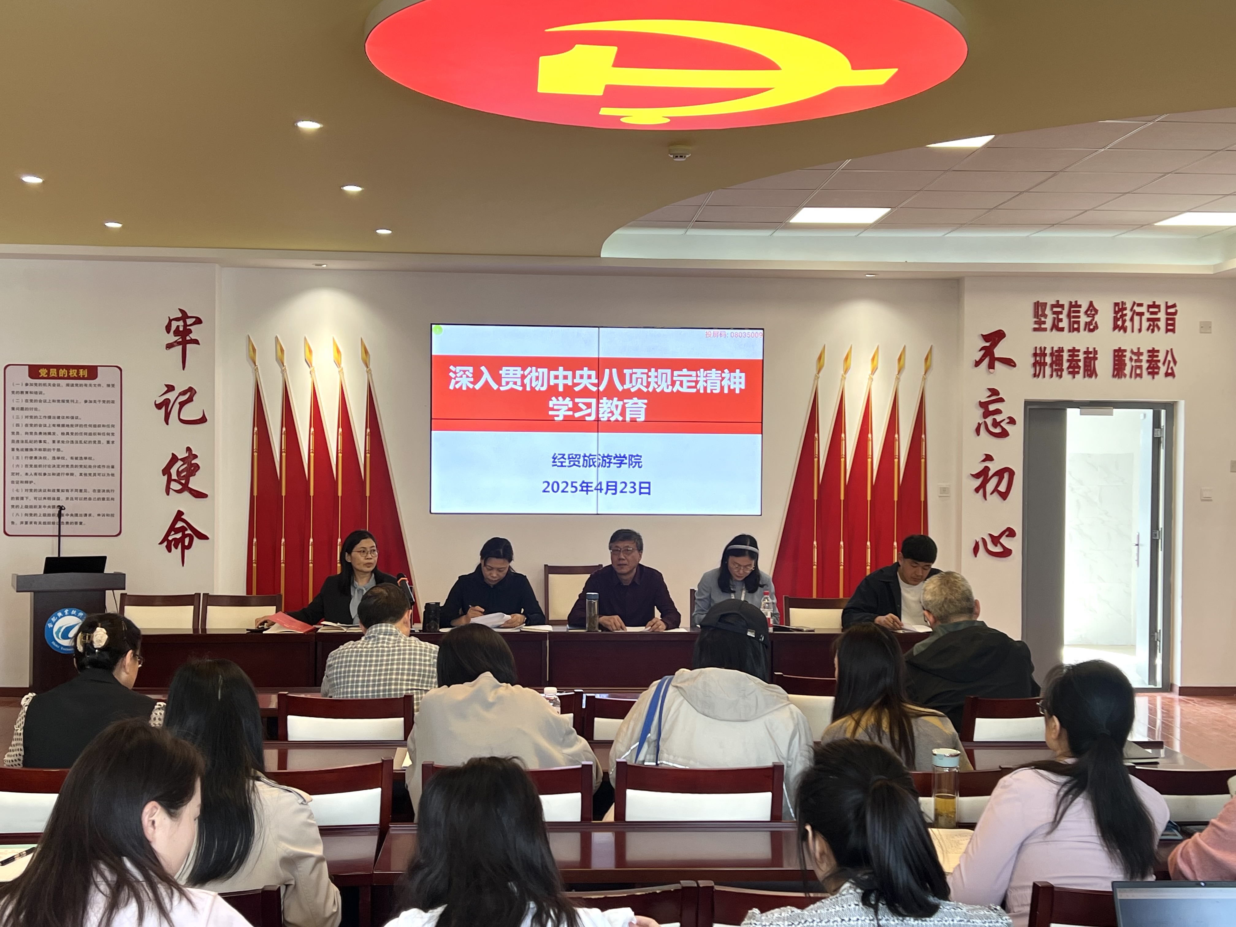 4月23日下午,经贸旅游学院在党性体验馆开展深入贯彻中央八项规定精神学习教育暨全体教职工大会。学院党政、全体教职工参会,会议由该院副院长付晓兰主持。